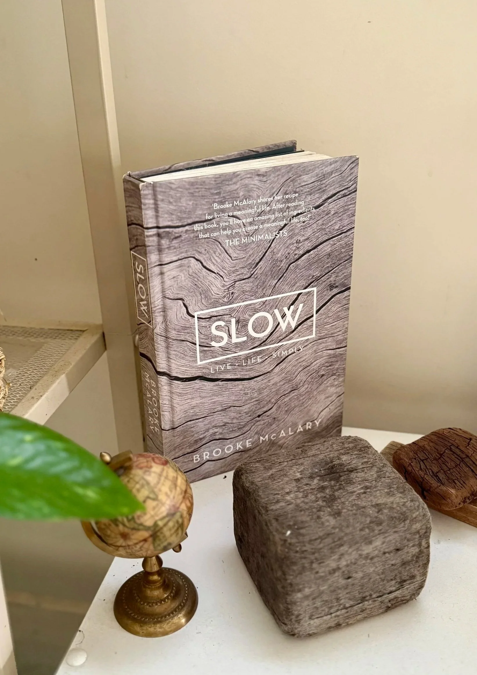Slowing down unfortunately doesn’t happen overnight. It takes deliberate practice. After my urgent life event, I found myself during a 2-week decompression time out in a bookshop in Byron Bay picking up this book, Slow: Live Life Simply. I didn’t seek out “slowness.” But when I saw the title, I intuitively knew I’d needed “slow” for a long time. Here’s a picture of it still standing on top of my bookshelf behind my desk as a day-to-day reminder for me to practice “slow living.”